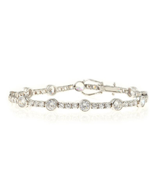 Add a show-stopping addition to your bracelet stack with this unique design. Featuring 7.2-carats of alternating bezel and prong set, dazzling round-brilliant simulated diamonds. Luxuriously finished in top quality gold vermeil, for ultimate durability and glamor.