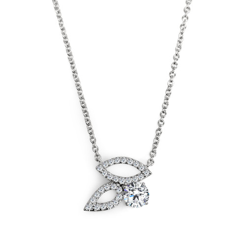 Inspired by nature, this beautiful pendant features a delicate pave, open two-leaf design. A sparkling, 2-carat, flawless, hand-cut simulated diamond stone is elegantly highlighted by the softly glinting pave stones. Finished in gold vermeil for durability and a luxe feel. A versatile necklace that makes for a beautiful addition to a layered look, or a feminine, glittering design for everyday wear and a sentimental gift idea.