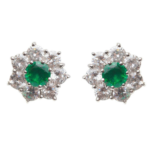 These delicate flower button earrings showcase 7 stunning simulated diamonds, prong set in gold vermeil, surrounding a 5.5mm lab-grown, rich-green emerald stone. These timeless, feminine studs are the perfect earring for yourself or a thoughtful, sparkly May birthday gift.