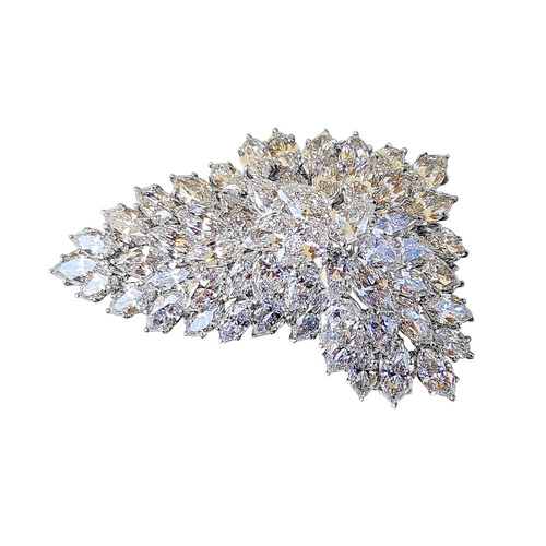 This timeless brooch features a glittering collection of marquise and pear shaped simulated diamonds, elegantly clustered for maximum sparkle. Finished in gold vermeil for a luxurious feel, this brooch is the ultimate head-turning accessory for any o