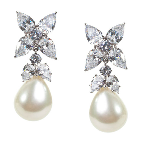 A classy earring with an elegant touch of pearl for extra glamor. Featuring a pear-cut, lustrous white pearl capped with pear and round brilliant
