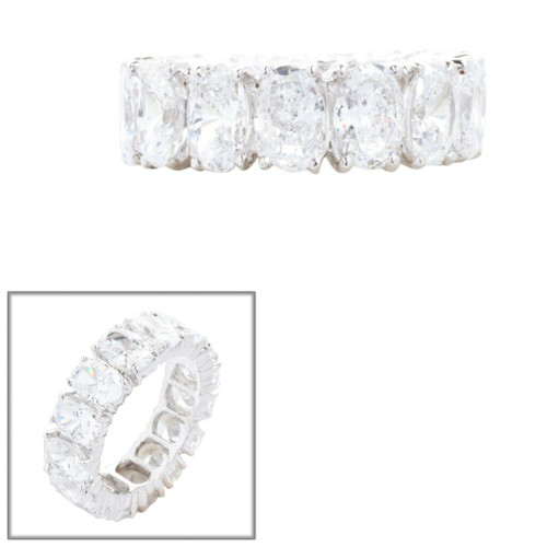 This oval-cut eternity wedding band ring is a SHOW STOPPER. An endless wreath of classic elegance, these 0.50 carat, hand-cut, ultra-quality simulated diamond stones dazzle within the enduring lustre of 14K gold or gold vermeil. Perfect as a wedding band, anniversary gift, or to be worn as a statement piece. Our simulated diamonds are of the highest quality, made to last, and hand cut to be crisp, brilliant and indistinguishable from diamonds to the naked eye.