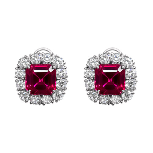 These romantic deep red, ruby earrings are a bestseller for a reason! Featuring a gorgeous 3.5-carat (9mm), square-cut, lab-grown ruby gemstone surrounded by a 2.4 carat halo of glittering, flawless simulated diamonds and fashioned in gold vermeil. Perfect for a July birthday, a seductive pop of color or anytime you are looking to effortlessly add a little luxe to your outfit.